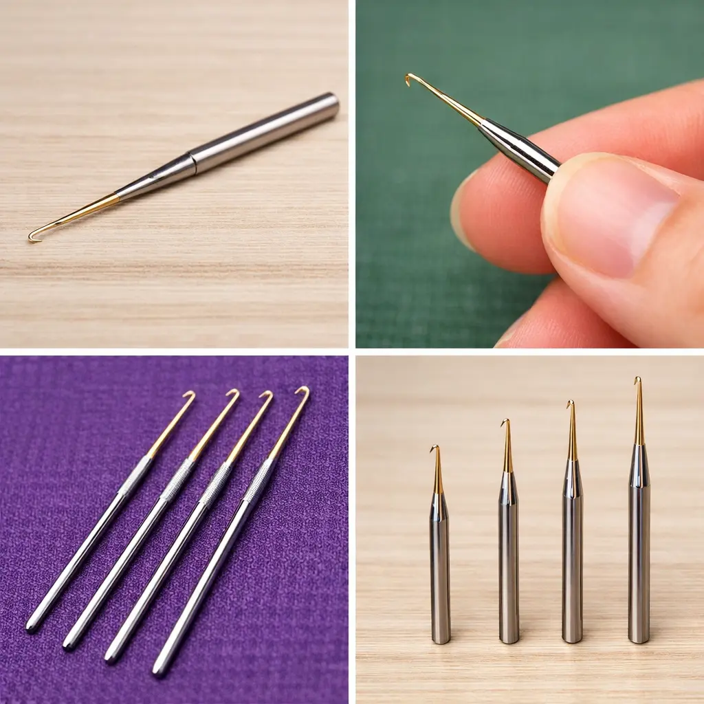 Aari work requires the right type of needle or hook to achieve neat and professional designs. There are mainly four types of Aari needles, each designed for a specific purpose: